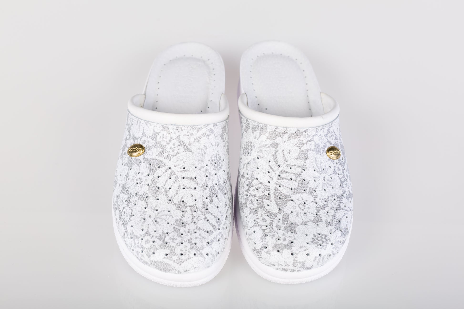 Pantofi mireasa decupați piele naturală PERLA 3314 Alb sidef