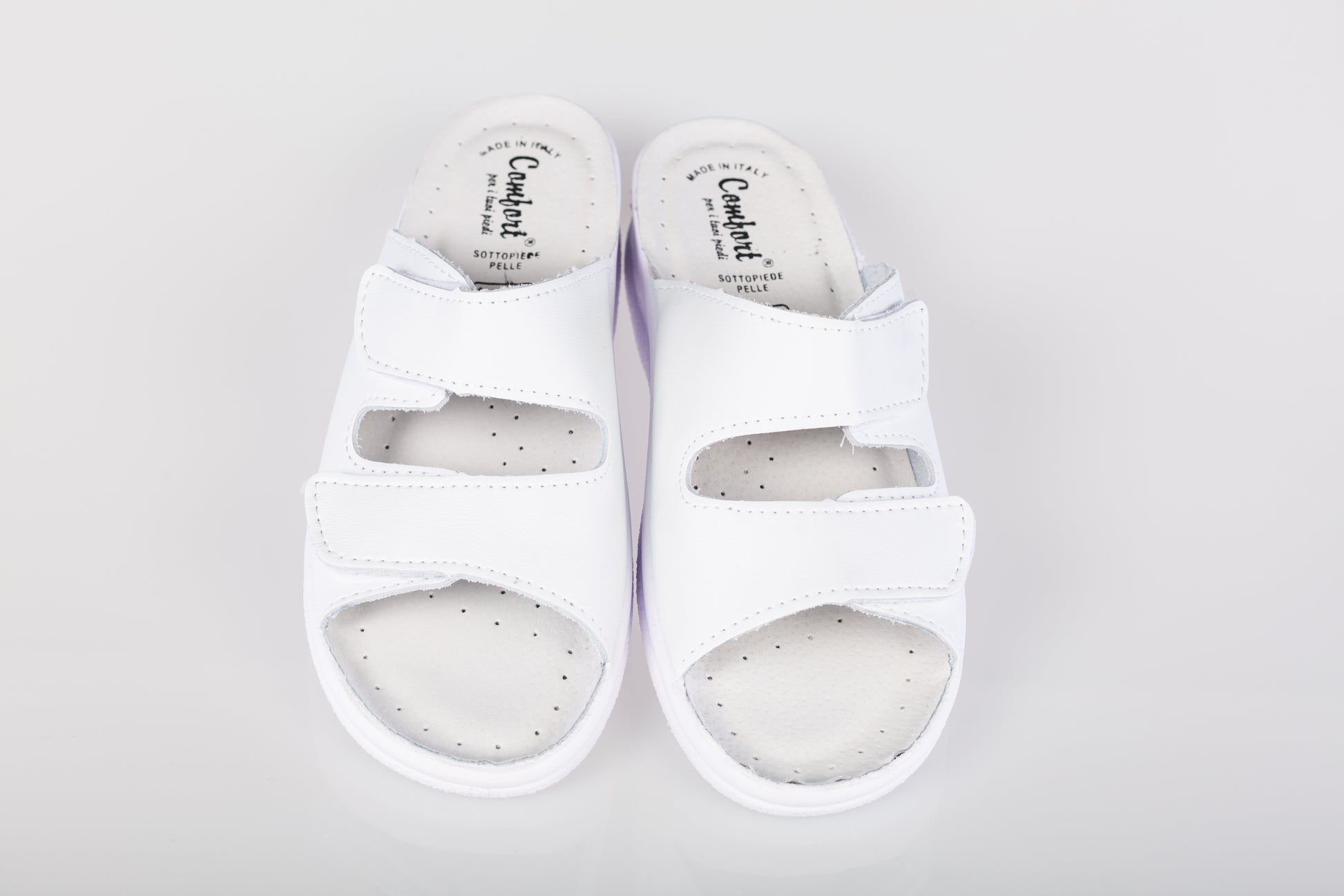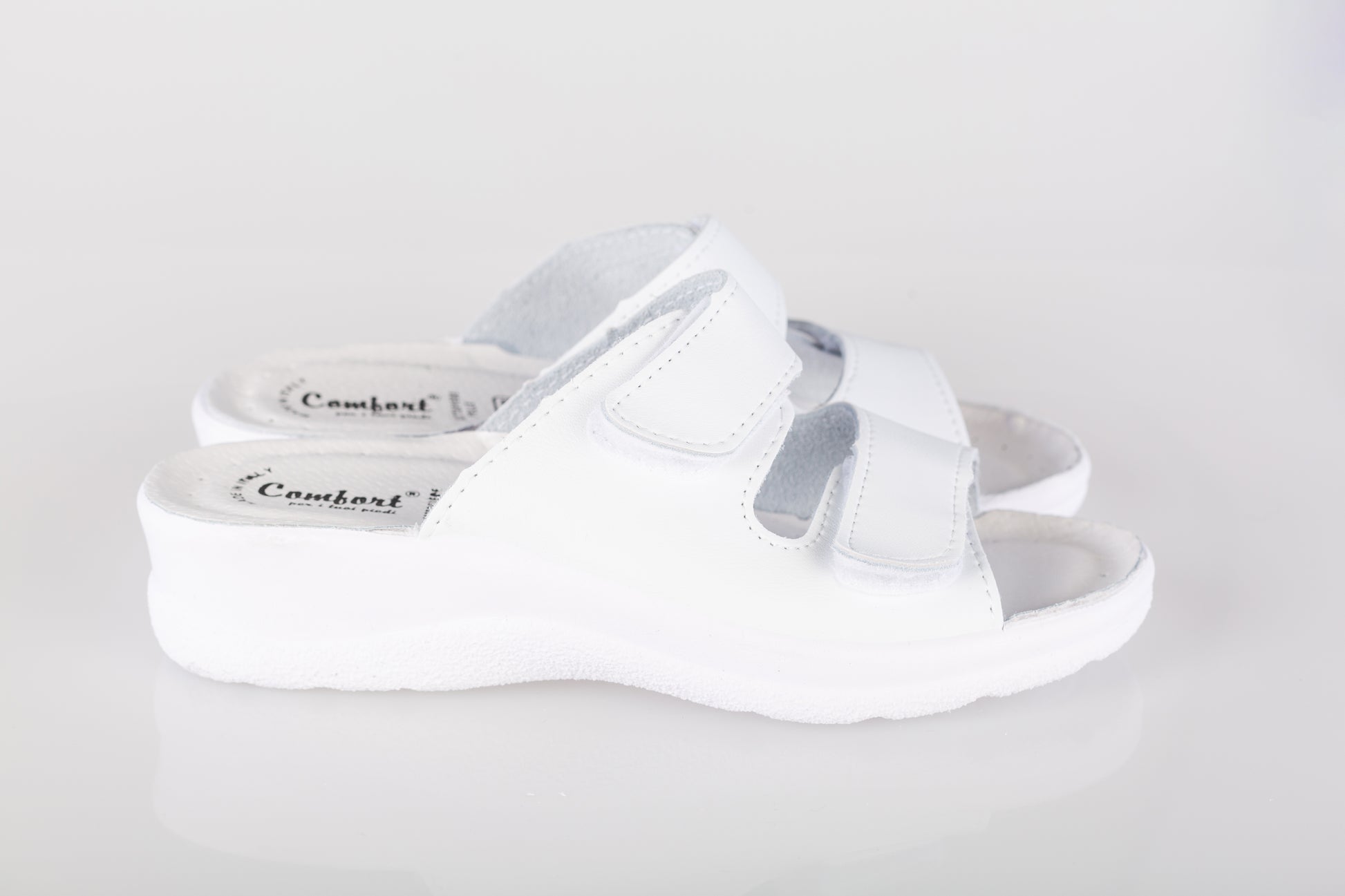 Saboti DACO de dama din piele naturala cu brant moale avand 2 barete cu scai reglabil si o talpa usoara groasa de 4 cm. Greutatea unui singur sabot este de 184 grame.