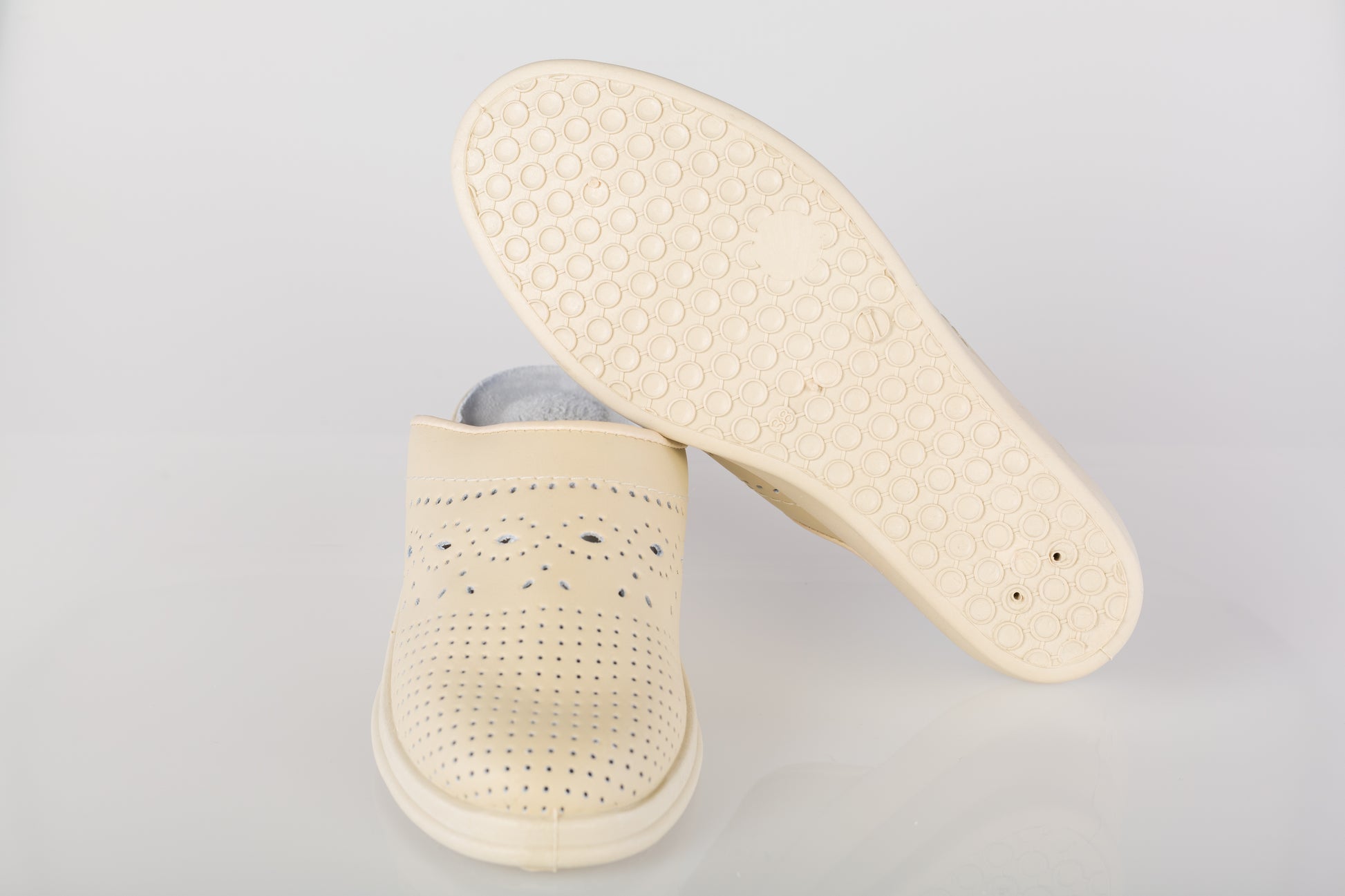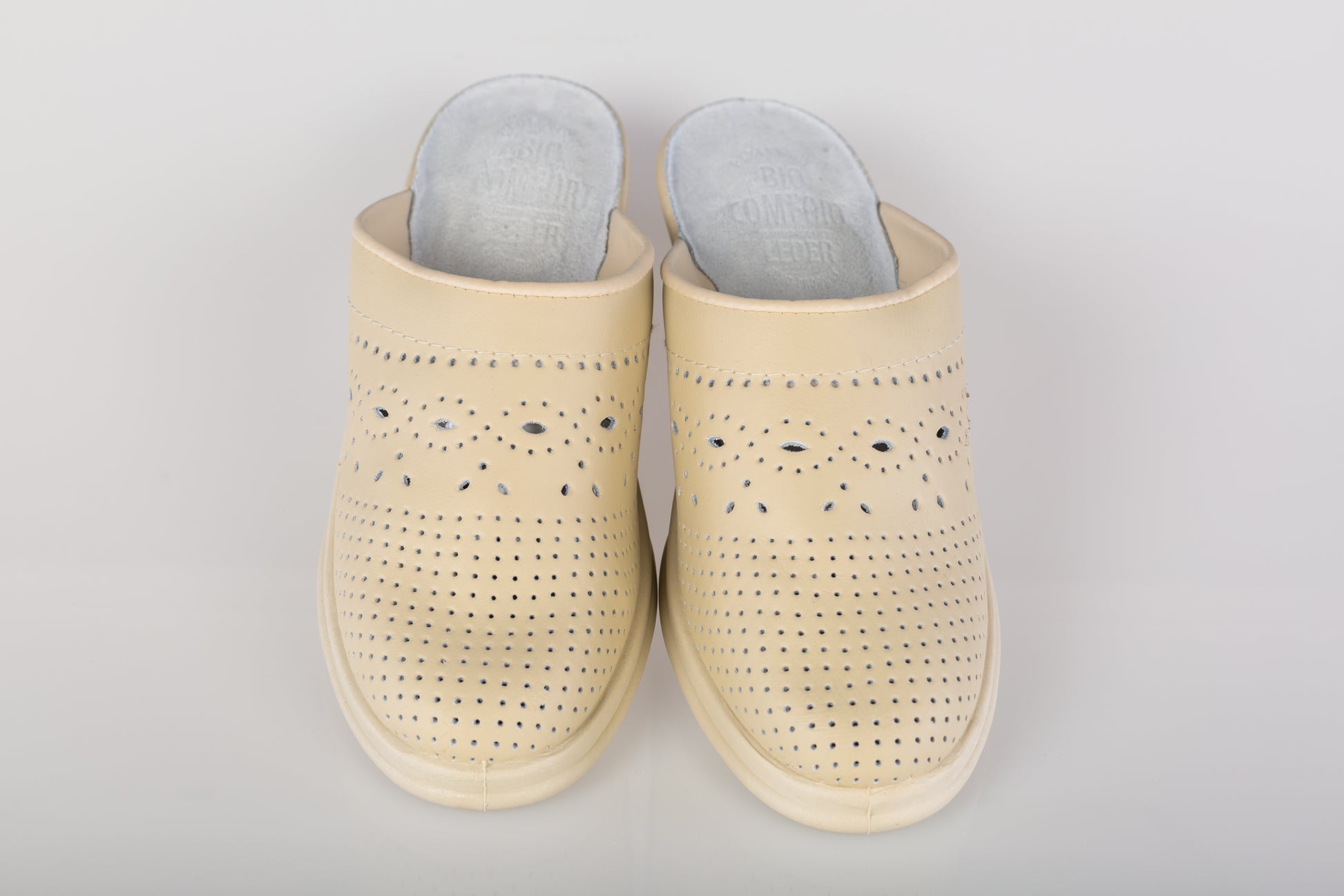 Saboti DACO de dama din piele naturala cu brant moale avand varful inchis si o talpa usoara groasa de 4 cm. Greutatea unui singur sabot este de 184 grame.