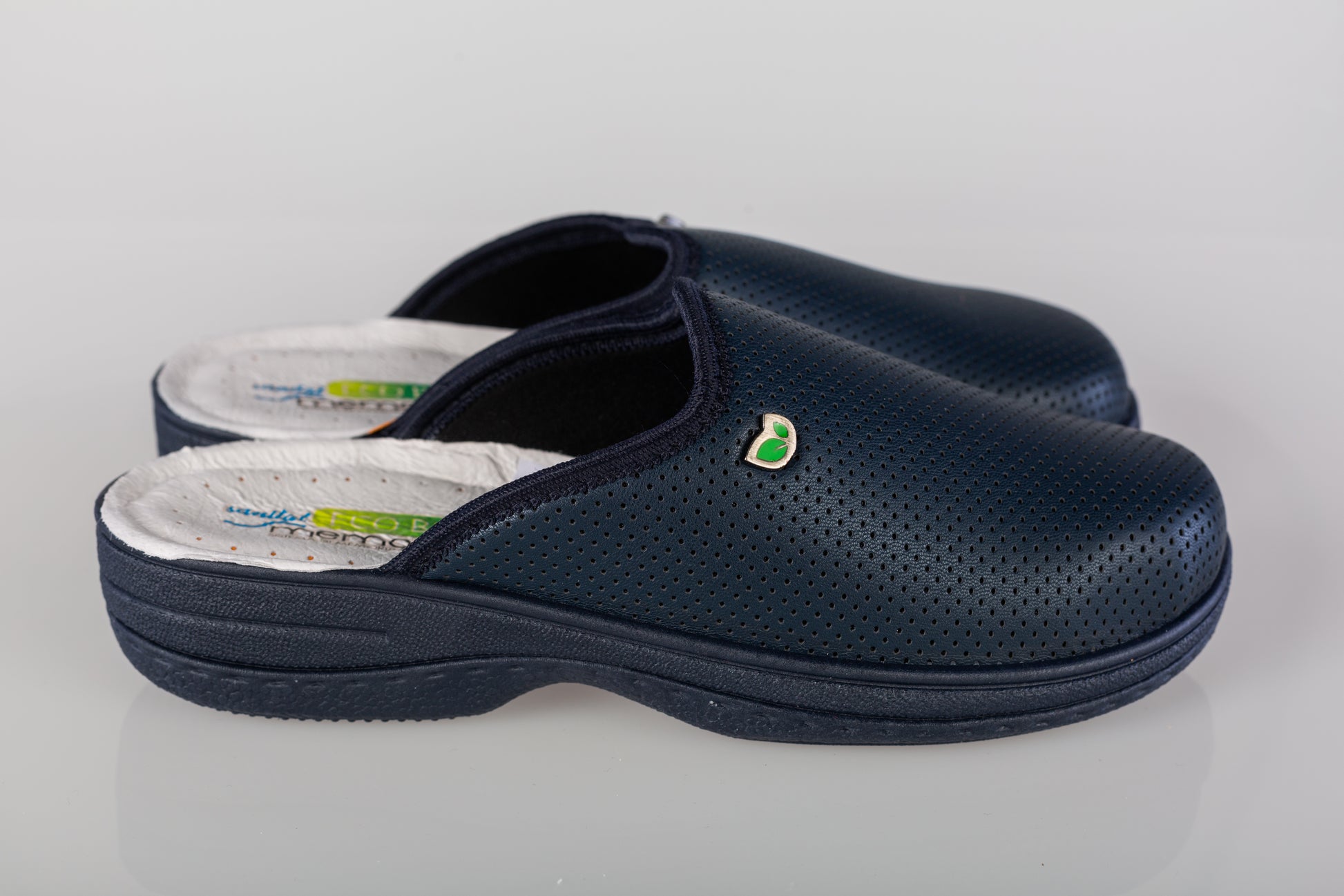 Saboti DACO de dama din textil elastic cu brant moale avand varful inchis si o talpa usoara groasa de 4 cm. Greutatea unui singur sabot este de 184 grame.