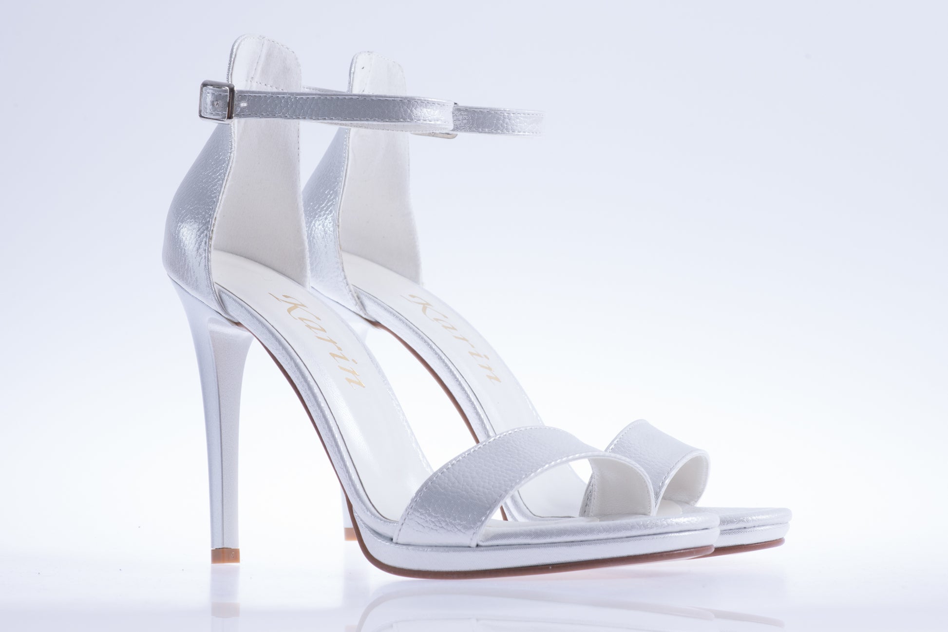 Sandale mireasa KARIN din piele ecologica de calitate premium avand un toc stiletto de 10 cm la culoare. Greutatea unui singur picior este 175 grame. Prinderea se face cu o bareta subtire ce se prinde deasupra gleznei pentru o fixare mai buna a piciorului,iar in fata are dispusa o platforma de 0.5cm.